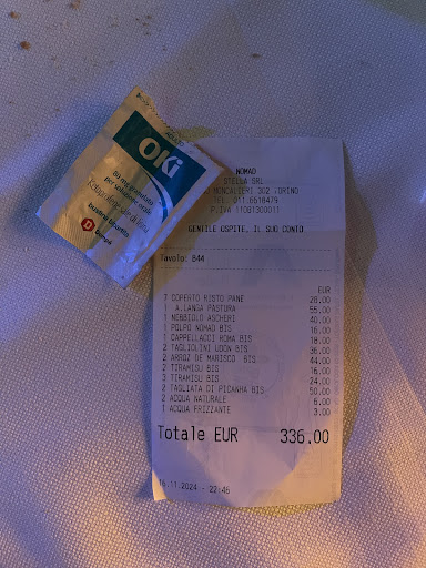 Nonostante una prenotazione ottenuta in anticipo, l'accesso a questo locale torinese è stato gestito in maniera dilettantesca e inefficiente, una chiara anticipazione di ciò che ci aspettava all'interno. All’ingresso, ci siamo trovati di fronte a una figura tragicomica: una donna bionda di mezza età, esageratamente truccata e abbigliata in un completo di ecopelle bianco che sembrava un residuato di un film di serie B, tentava di imporre un "dress code" arbitrario e mai comunicato prima. Mentre fiancheggiava due "buttafuori", sembrava più preoccupata di ostentare una presunta esclusività piuttosto che accogliere con rispetto chiunque avesse avuto la sfortuna di prenotare.