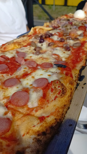 Siamo stati in questo locale in varie occasioni, il locale è carino, pulito diviso in due piani più il dehor, quest'ultimo non molto grande che affaccia su strada vicinissimo a Piazza stampalia, personalmente preferisco mangiare all'Interno, in estate c'è l'aria condizionata e il dehor a mio parere non è nulla di ché. Il personale di sala è veloce ,anche di sabato, principalmente femminile, giovane. Abbiamo sempre consumato pizza, il menù però propone anche antipasti, primi e secondi piatti sia di carne che di pesce. L'ultima volta abbiamo preso la farinata, che stavolta non era buona. Il menù pizze ha un bel assortimento e oltre a proporre la classica pizza al mattone rotonda, offre anche la pizza "al metro" ideale per le tavolate e da condividere, parte da un minimo di 25cm, una misura adatta al consumo di una sola persona dando la possibilità di mangiare due varianti in una sola, tipo io ho preso metà pugliese, molto buona (pomodori freschi, mozzarella di bufala, salsiccia, friarielli e crema di fave) e metà burratona ( base margherita con nel mezzo una burrata) L'impasto leggero e digeribile, non ho bevuto durante la notte, stesa sottile e risulta croccante. I prezzi delle pizze variano da un minimo di 6€ ad un massimo di 11/12€ se nn ricordo male.