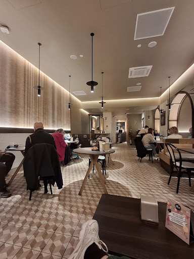 Ora che il locale è stato rinnovato, è davvero un piacere mangiare all'interno! È estremamente accogliente e anche molto intimo, poiché la saletta interna non è visibile da fuori. Purtroppo, l'ultimo croissant che ho assaggiato è stato abbastanza sgradevole. Era un croissant al cioccolato bianco, sembrava vecchio e stantio, mentre la farcitura era troppo dolce e sapeva poco di cioccolato e tanto di zucchero, è stata una vera delusione! Frequento spesso questa sede di Panfé, e mi sono trovata sempre abbastanza bene💞 Lo staff è tendenzialmente cordiale, anche se dipende un po' da chi trovi. Il croissant vegano al lampone e quello normale al cioccolato li consiglio vivamente, sono i miei preferiti! Tra tutte le bevande che ho provato, il caffè macchiato è stato il migliore (ben più buono del caffè normale), mentre il cappuccino di soia non è stato molto di mio gradimento. Era estremamente conveniente la colazione (caffè/cappuccino + croissant) a 1€, ma purtroppo non è più valida al momento come offerta. Offrono un servizio di panetteria eccellente: pizza, focacce e pane (oltre a dolci vari) sono sfornati continuamente e se ne trovano tantissime varianti, tutte buonissime! È possibile acquistare anche monoporzioni di patate al forno (fantastiche soprattutto se ancora calde) a 2€. C'è anche la possibilità di fare aperitivo con spritz e tagliere di...
