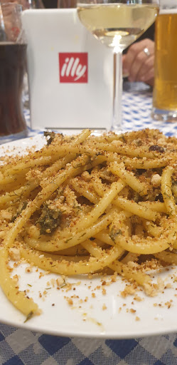 Read moreSiamo andati a vedere la mostra alla mole di Tim Burton e alla fine affamati cerchiamo dove mangiare tipicamente Piemonte.... Vaghiamo per la città, ma nulla: o chiuso oppure pieni. Approdiamo qui. Una pasticceria che propone primi piatti. Scegliamo di mangiare i bucatini con le sarde e finocchietto selvatico. La cottura della pasta buona, anche se l'avrei preferita più al dente, abbondante il finocchietto selvatico, anche se sarde, pinoli e uvette non pervenute, ovvero decisamente scarse. Il pangrattato un po' troppo unto.. forse una recensione severa del piatto, anche se nel complesso è stato piacevole. Accompagnato da un calice di bianco (scarso) e un servizio simpatico e cordiale. L'ambiente haime è molto squallido, anche se la metratura si presterebbe a un bel locale accogliente. Il banco dei dolci non invita...