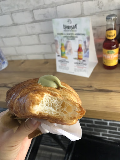 A week ago I had a breakfast there I ordered coffee and croissant with pistachio but I didn’t like it I don’t know why people making so high stars. I think if it’s pasticceria should be everything made by them but that croissant where filled with pistachio awkwardly ( please see the photo) it was almost empty only where the barwoman put the cream a bit. Yes from outside it looks like a lot of sweets and fresh but I was disappointed. Inside of cafe is also very nice full of sweets only for that I gave 1 star. There is no price for drinks nor for sweets. And the end I paid €3,50. The entrance good for people with wheelchairs. The barwoman didn’t wear the facemask. I recommending the next bar they...