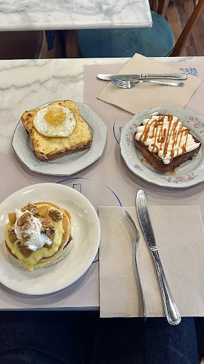 Un posto che sa il fatto suo quando si parla di colazione: piatti deliziosi, bilanciati e di alta qualità. Ho provato: • Croque Madame – pane croccante, formaggio fuso e uovo perfettamente cotto: una bomba di gusto! • Pancakes con crema pasticciera, mele caramellate, noci e panna – soffici, dolci al punto giusto e con una texture spettacolare. • French toast con mascarpone e caramello – morbidissimo e goloso, senza essere stucchevole.