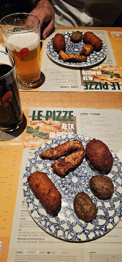 Read moreLocation nuova, suddivisa su più sale. Si sente forse un pò il brusio delle chiacchiere della gente. Personale giovane e cortese. Qui fanno le pizze in 3 modi diversi: alta, di mezzo e bassa. Puoi anche scegliere una pizza pensata in un modo e far cambiare tipologia, con aggiunta di 1€ e qualcosa. Noi abbiamo preso una bassa, La Speciale (pomodoro mozzarella di bufala, pomodorini) ed una pizza mezzana La Stefy, pizza del mese agosto, (mozzarella, salsiccia sbriciolata, patate al forno, pomodorini, olio al rosmarino e limone [questo buonissimo] con aggiunta di zucchine). Prima abbiamo assaggiato un antipasto da condividere, misto di fritture (4 pezzi di pollo pagato fritto, 4 polpettine, 2 supplì riso pomodoro e mozzarella, 2 crocchette di patate con mozzarella). Da bere una birra alla spina bianche della poretti da 0,5 ed una coca zero alla spina da 0,5. Per concludere un dolcino, una mini crema al caffè con panna sopra ed un semifreddo "al popcorn" (la crema sopra insomma). Tutto molto buono, ingredienti di qualità e la pizza non ha fatto venir sete...