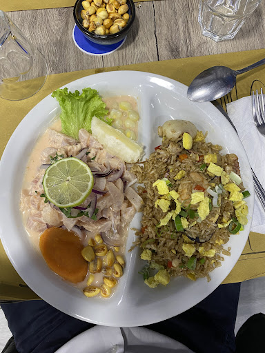 Un tris di mare (ceviche , arroz con mariscos y jalea ) Arroz con pollo y papa a la huancaína Un aeropuerto (molto simile al riso cantonese , con aggiunta di germogli di soia pollo o maiale ) Causa de atún 🔝 Yucas fritas