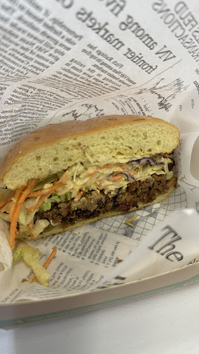 Read moreVisto in un video YouTube, siamo andati a provarlo. CIBO: abbiamo preso un panino con pulled pork, coleslaw e pickles home made e uno con brisket, peperoni arrosto e cipolla croccante. Entrambi molto saporiti, si sente che la carne è buona e lavorata bene. Abbiamo preferito il brisket perché più morbido, mentre il pulled è risultato un po' più asciutto, magari con un po' più di coleslaw sarebbe stato più bilanciato in termini di umidità all'interno del panino. Davvero godurioso il brisket, ma le cipolle croccanti si sono sentite solo alla fine, sarò di parte, ma ne aggiungerei un po'. SERVIZIO: veloce, il ragazzo al bancone molto preparato e cordiale. AMBIENTE: ci sono posti a sedere dentro, ma pochi. BAGNO: non usufruito. PREZZO: rapporto quantità-prezzo un po' spostato a favore del prezzo. I panini erano un po' piccoli rispetto al costo (13€), ma comprendo che il lavoro dietro alla preparazione della carne sia importante. Probabilmente ci tornerei per togliermi lo sfizio di un buon panino...