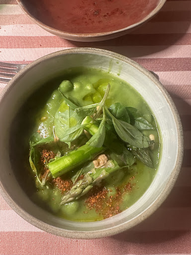 Our reservation was for 7:30 PM, and we had been informed when we booked that if we were fifteen minutes late, the table would not be available, and we would be charged 40€ each. We arrived at 7:25 PM and found that the lights were off, the security grill was down, and that there was no one moving around inside. We walked down the street and waited. At 7:40 the door was opened, and the lights were turned on. Another couple entered, and we followed them in. Our table was in the back, and we asked if we could be moved to the front room, nearer the door, where there was more airflow. ‘No, that’s impossible’. Okay, we understand, you’re going to be super busy, and have planned out the room, or something, because you told us that we could only have the table for two hours. And actually, because the chairs are so uncomfortable, sitting there any longer would have been impossible. When we left at 9:30 the restaurant was not even half full. And no one said good night.
