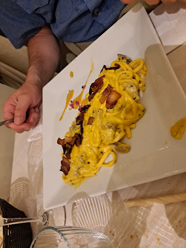 I think it was quite misleading the Fork's discount offer we got, as initially it said that only drinks and menus were excluded, but then at the moment of paying we were told that all dishes including tartuffo (like 70% of a la carte options) were also excluded from the offer. So, quite difficult to stay within the offer, so not really an offer and NOT TOLD ON TIME. Quite disappointing really. On top of that, they served me a beer with ice cubes!. Never in my life I witness such a thing, but certainly I was not expecting that in Italy!!!, I asked them to change my beer, and they just removed the ice cubes with a spoon instead of getting me a new one (Heineken by the way, not Moretti or alike) and they still missed one more ice cube :'( :'( . Food was all right, a bit bland maybe....