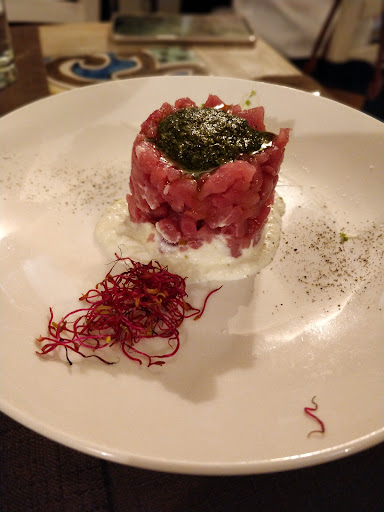 nice comfortable place to have a great dinSner. typical fish resturant with many fancy dishes. you are able to find cool and underground menu, the fish is cooked perfectly, nice raw starter dishes. the first courses are pasta based with pretty nixe typical pasta and the second dishes are quite rare to find elsewhere. the staff is nice and the place itself is not so fancy, so good cooking without the needs to be super well dressed. they have a huge amount of wines from all the region, and also the desserts choice is good and handmade. The price is quite costy but on the average compared to the food. definitely a suggested place if you want...