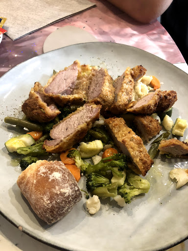 Read moreSono andata assieme al mio compagno per pranzo, onestamente? un esperienza da non ripetere. Per quel che costa le quantità e sopratutto per quello che ti viene offerto non ne vale la pena. Lo sconsiglio. CIBO: Il mio polpo su letto di piselli era totalmente bruciacchiato, c'erano si e no 5 tentacoli di polpo in tutto, mentre il mio compagno ha ordinato un "lumberjack", la girella di salsiccia anch'essa bruciacchiata e fredda, bacon freddo e gommoso e bruciato alle estremità, l'uovo totalmente insipido e hamburger sotto asciutto, i pancake non erano morbidi come dovevano e si sbriciolavano... Le patate sapevano solo di bruciato e unto. SERVIZIO: Per non parlare del personale, frettoloso e poco professionale, all'arrivo la cameriera mi accoglie con un informale "ciao, come stai?" senza aggiungere altro, lasciando un silenzio imbarazzante per cui ha dovuto porre rimedio la collega che ci ha chiesto se avessimo prenotato ecc, un benvenuto non dei migliori, dopodiché appena ci siamo seduti e consegnato i menù tempo nemmeno 5 minuti che ci hanno subito chiesto cosa volessimo ordinare, senza lasciarci il tempo di guardare bene il menù, chiediamo altro tempo e, dato che i camerieri ci ronzavano attorno mettendo fretta ordiniamo alla veloce. PREZZO: Parliamo poi dei prezzi, una bottiglia d'acqua da 750ml per due persone, pagata tantissimo assieme al pane sovrapprezzato (che nemmeno avevamo richiesto e che, di solito, viene offerto e qui invece viene fatto pagare, dato questo "piccolo dettaglio" sarebbe stato carino se il personale ci avesse almeno chiesto se lo volessimo o meno), sopratutto considerando il fatto che era il classico pane surgelato e riscaldato, palesemente preso al super, piccolissimo e insapore. Inutile poi soffermarmi sul mio succo d'arancia che avevo ordinato, che speravo fosse spremuta fresca essendo un posto dove fanno i brunch o, quantomeno, un succo di buona qualità... Con delusione posso affermare che le tachipirine per bambini che prendevo da piccola avevano un sapore migliore di...