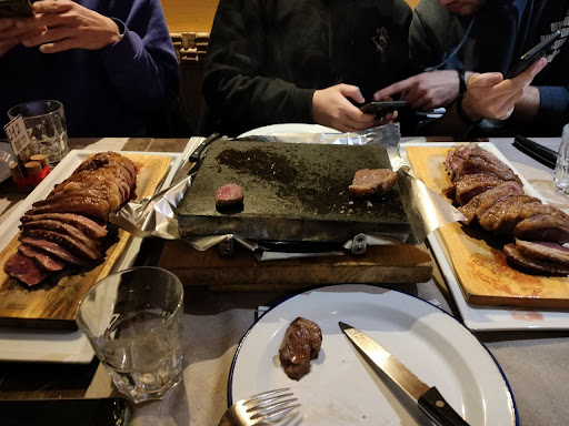 Abbiamo cenato in sei, prendendo due menù picanha da 1kg l'una, dal prezzo di 68 euro/kg. Per questo menù tagliano la picanha a scelta, da un minimo di 700g a un massimo di 1.5kg, la cucinano 10 minuti in forno, la tagliano in fettine e poi la portano al tavolo con una pietra rovente su cui ognuno può terminare la cottura a piacimento. In entrambi i casi, una delle estremità del taglio era estremamente coriacea, al punto di essere quasi immangiabile. Su 1KG di carne stimo che ci fossero massimo 700G di picanha e almeno 300 di Coxão duro. Se spendo 68 euro/kg per della picanha mi aspetto che sia tutta picanha, non 70% picanha e 30% un taglio da macinato di serie B che vale sì e no 15 euro/kg.