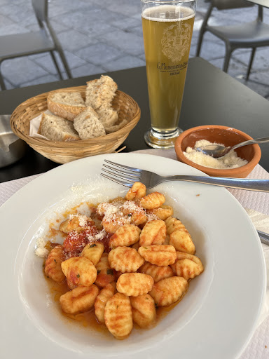 Il bar in pieno centro sembra piccolino, non ho visto altre sale. Prima di sederci torno a guardare quelle meraviglie che viste da un’altra prospettiva, forse, complice la luce calda del locale, insomma la panna non era più così bianca 😳 Dai non importa, prendo il menù… non ci capisco un tubo un gran disordine tra colori improbabili e dimensioni ridotte, taglio corto “tu cosa prendi?” chiedo al mio socio, “c’è lo zabaione!!!” Nooooo, davvero? Ma che figooooo!
