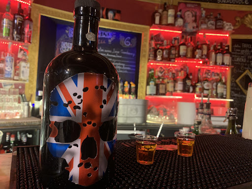 Vibrant bar decked out with neon lights & offering flammable shots & creative cocktails.