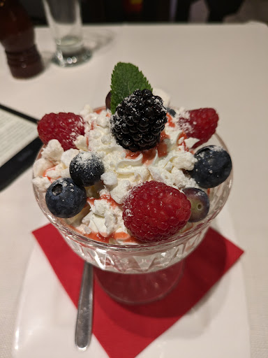 I had the Farinata, pizza with gorgonzola and salami, then berries and cream...