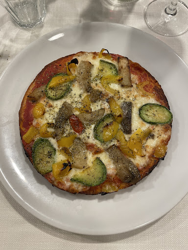 I had the Farinata, pizza with gorgonzola and salami, then berries and cream...