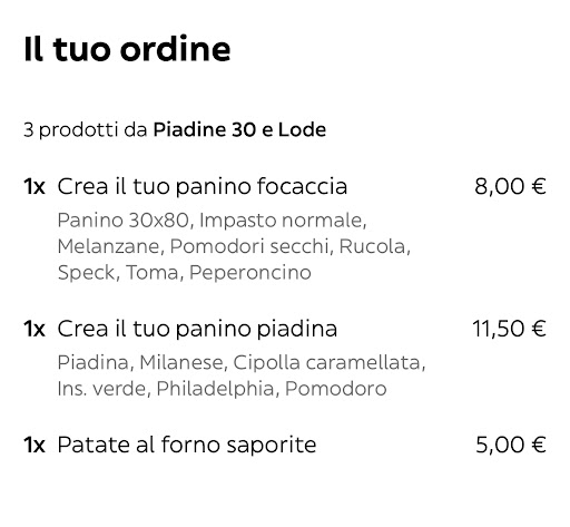 Read moreConosco la paninoteca 30 e lode da Via Monginevro, famosa per i suoi panini gustosi e ricchi. Abitando in zona l’ho ritrovata su glovo (in via monginevro ha chiuso) ed ho ordinato nuovamente con alte aspettative. Ho speso quasi 30 euro per una piadina, un panino e le patate, un furto per la qualità arrivata. La piadina era moscia, la cotoletta sembrava cruda al morso. Le patate al forno altre non erano che le patate al rosmarino dell’ins prese dal banco congelati. Il panino era scarso di ingredienti e di sapore. Insomma i soldi peggio spesi che mi hanno lasciato l’amaro in bocca. Volevo chiamarvi per lamentarmi “di persona” ma ho preferito non essere mai più vostra cliente, tanto non mi interessa mangiare più niente da voi. Comprendo che sia Agosto ma questo non vi da il diritto di abbassare la qualità perché i miei soldi sono...