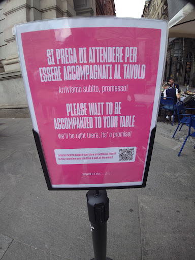 Our experience of Sfashion café is waiting at least ten minutes to be seated by the photographed sign that says "We'll be right there, it's a promise", and leaving again.