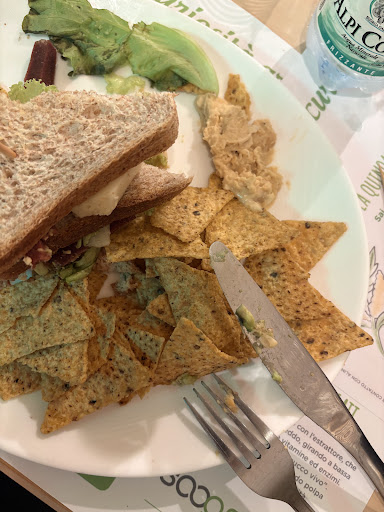 Il Club Sandwich, che aspettavo con fame e curiosità perché in foto sembrava invitante, è stato la delusione più grande: zero salsa, ingredienti secchi e un’insalata tutt’altro che fresca. Ho mangiato solo una metà perché ero a digiuno da ieri. Mi rode anche aver sprecato il mio unico pranzo della settimana in questo posto.