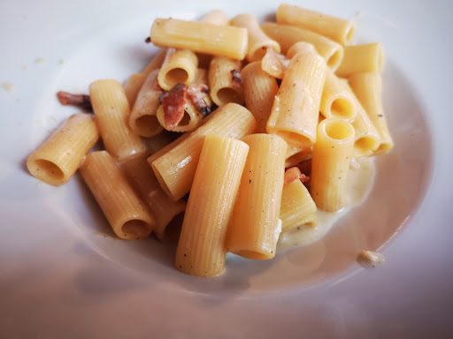 Hospitality need to be revised a little bit. When we arrived the waiter at the door was trying to communicate without saying a word, not even "hi". I don't know if it's typical but some swearing was thrown in there too. The other waiter was professional. The premises are quite nice, most places in Turin are stuck in the 80s but here there's a modern vibe. Prices are average/ish, with 2 starters to share, 4 pastas and a bottle of wine we paid slightly above 110€. A bit disappointed about the food to be fair, the starter was just 3 flowers and 2 supplì (paid 10€), rigatoni pasta was weardly over cooked at the bottom and undercooked at the top, very salty but I guess it's normal because of the guanciale. I guess if you're looking for Roman cuisine you could give this place a try otherwise there's plenty of other places...