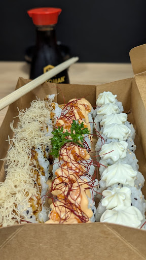 Avevo già provato il delivery e mi era piaciuto molto, sia dal punto di vista della qualità dei prodotti che della presentazione, ma non avevo mai interagito con il personale, ordinando su una piattaforma. Da quando hanno aperto il negozio fisico, sono già andato un paio di volte...il sushiman sa il fatto suo, maneggia i coltelli che sembra un samurai, in cassa (credo sia il titolare) c'è un ragazzo biondo occhi azzurri, gentilissimo. La sensazione è di estrema pulizia e servono tutte le declinazioni del sushi: prodotti freschi, belli da vedere e molto buoni. In particolare sto impazzendo per i mango roll, che dare 5 stelle mi sembra poco. Iniziano a piacere appena li vedi!...