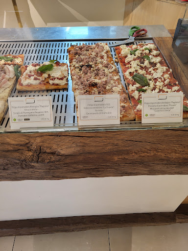 Read moreCinque stelle mancate da una vegetariana! Ci rechiamo con alcune colleghe in pausa pranzo in questo locale. Gli spazi sono abbastanza piccoli, ma è comunque possibile consumare il cibo all'interno grazie ad alcuni piccoli tavolini e sgabelli. Il bancone è molto ampio e ben fornito, così come gli scaffali. La selezione di pani e grissini è molto valida. Si può capire fin da subito la qualità delle materie prime usate e la bontà dei prodotti. Per quanto riguarda il banco pizza, si trovano schierati vari gusti dai più classici ai più ricercati. Anche la semplice margherita è caratterizzata da ottimi ingredienti. È possibile quindi scegliere diversi tranci e farseli scaldare prima di consumarli. La pizza, con impasto di pizza in teglia alla romana si presenta leggera e croccante. I condimenti sono ottimi. Come anticipato, l'unico difetto che trovo è l'offerta vegetariana. Infatti, al momento della mia scelta c'era soltanto la pizza margherita e un'altra con pomodorini e mozzarella. La rossa, ad esempio, era finita. Le altre pizze avevano una componente di carne, così come le pizze bianche farcite. I prezzi sono un po' alti, ma giustificati dalla qualità. Infine, il personale è molto gentile e disponibile. Quindi consiglio caldamente questo posto a tutti. E consiglio per il locale: aumentate la scelta vegetariana che potrete solo che aumentare la vostra clientela e la loro...