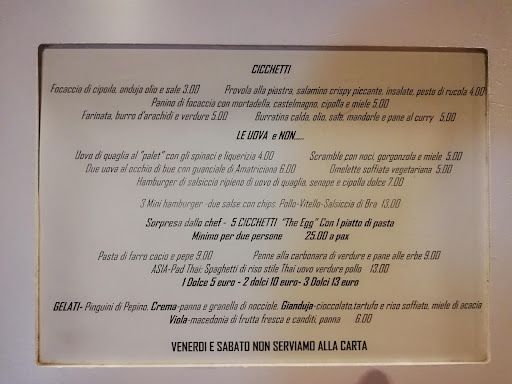 Read moreCena per 2 grazie a uno smartbox. Il posto è grazioso e gli antipasti erano buoni (paradossalmente, soprattutto quelli non a base di uova). Ma veniamo alle (purtroppo numerose) note dolenti. 0) Si è provato subito indirizzarci all'altro locale dello chef, il Birichin, che essendo molto meno informale presumibilmente costava di più. Magari però è un stato errore, quindi ingnoriamo l'aspetto.