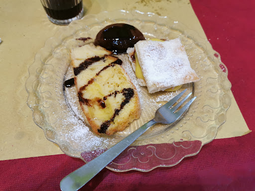 Voto 4 alla cucina: piatti davvero molto buoni, mi han colpito in positivo. Buoni gli antipasti, semplici ma ottimi. Nota positiva per le linguine al pesto (il pesto era eccezionale), come suonavan bene anche le penne al sugo (mamma mia che sugo!). Complimenti ai cuochi per il pollo in umido e il tris di verdure (piatto di contorno semplice, ma mi son capitati cuochi che non sapessero renderlo gustoso). Dolci ottimi, non so se li fan loro, ma è molto probabile vista la fattura dei suddetti. Consiglio il Bonet. Uniche pecche son forse la quantità: mi sarebbero piaciuti piatti più "gonfi"; e il vino: un rosso un po' più di qualità sarebbe sicuramente il fiocco ideale per evidenziare la loro cucina.
