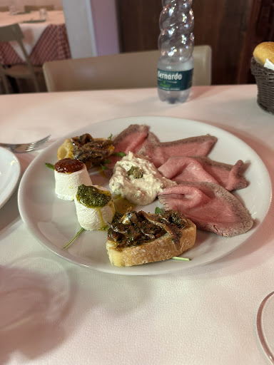 We ate here on May 7, 2025. It was a nice surprise. We were looking for a place to eat and came upon this restaurant, which had a cozy atmosphere. I could not find a menu online, so I cannot identify the food we ate. The appetizer was an assortment of sliced meat, soft cheese, and fish on bread. The appetizer was rigatoni with bacon-like meat. The appetizer does not look like much in my photo, but it was very good. The dessert was a "bonet," like flan. We were told that the food is local fare from northern Italy.
