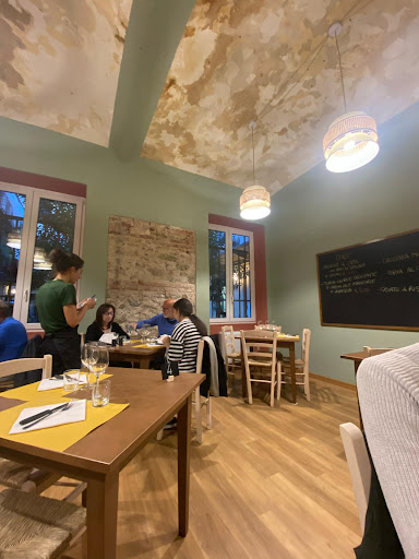 Siamo stati oggi a cena in questo ristorantino, l'ambiente è pulito e molto accogliente. Il menu presenta 4 antipasti, 4 primi, 4 secondi e una selezione di pizze, tutto ovviamente vegano. Ci sono stati gentilmente offerti all'arrivo una focaccia bianca (buonissima!!) e un'insalata russa (che a me non piace ma il mio compagno ha apprezzato). Abbiamo ordinato come antipasto una selezione di formaggi vegani serviti con marmellata e noci, molto buoni, e per primo un risotto al funghi (mi è piaciuto tantissimo) e una pasta al ragù di seitan (che il mio compagno non ha apprezzato moltissimo, ma il suo era un esperimento culinario con la cucina vegana 😂). Ho preso una fetta di torta al cioccolato da portare via (le porzioni dei primi sono abbondanti ed ero piena) che è sfortunatamente l'unica cosa che non mi è piaciuta. Il locale ha anche un vasto assortimento di prodotti biologici (pasta, cioccolato, olio, gallette, vini, ecc). L'esperienza finale è stata positiva, ho apprezzato sia la cucina che la cordialità di chi ci ha servito durante la cena. In due con 2 primi, un antipasto , un'acqua, una kombucha e un dolce abbiamo speso circa 50 euro. Tornerò per...