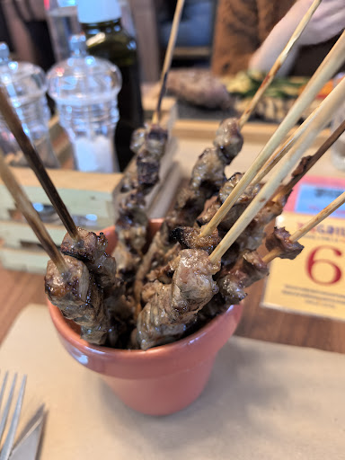 Read moreDo una stella perché le bombette sono buone ma il servizio pessimo. Premetto che siamo arrivati alle 21:40, ma dal momento che la prenotazione è stata accettata il servizio dev’essere uguale per tutti, ma così non è stato. Abbiamo scelto la formula all you can eat di bombette ma di all you can eat non c’è nulla. Attesa lunghissima … 1° e 2° giro tutto ok poi quando abbiamo chiesto altre bombette una cameriera con dietro scritto “aletta 11” ( non conosciamo il nome) ha iniziato a fare finta di nulla a dimenticare l’ordine e infine mentre aspettavamo le ultime 6 bombette (perché a loro dire erano finite) ci è stato chiesto se volevamo il dolce, la cosa assurda dalla stessa cameriera che prima ci aveva preso l’ordine delle ultime 6 bombette. Scioccati e infastiditi abbiamo detto di no e ci siamo recati alla cassa…. Ovviamente abbiamo detto l’accaduto e la ragazza con la maglietta “polpetta 8” si è scusata gentilissima ci ha offerto l’amaro…nel frattempo dalla cucina uscivano ancora le bombette. Siamo stati presi in giro. Costo 19,90 a testa alla fine tra patatine e bibite siamo arrivati a 27€ a testa. Potevano anche valerli per la qualità delle bombette ma non per la quantità insufficiente. Purtroppo non tornerei ne consiglierei...