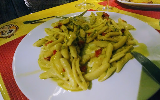 Read moreWe were in Tuscania for only one night and the food choices seemed a bit daunting. We had noticed this restaurant as we wandered through the town earlier and the menu and the outdoor garden area appealed. We were pleased the rain held off and arrived to be seated outside. It was a quiet week night and we had lovely service and a discussion with other customers and the owner/chef as well who we enjoyed a chat about food and wine.|With a primi each of pasta - one lamb and the other tomato, basil and walnut - a perfect size serve, as we were also having a secondi. Both were delicious fresh and tasty.|But for us the the bocconcini of coniglie (small succulent pieces of rabbit)with a light fresh tomato concasse was sensational !|Bread including home cooked rolls, and a nice bottle of merlot - completed this lovely experience.|Highly...