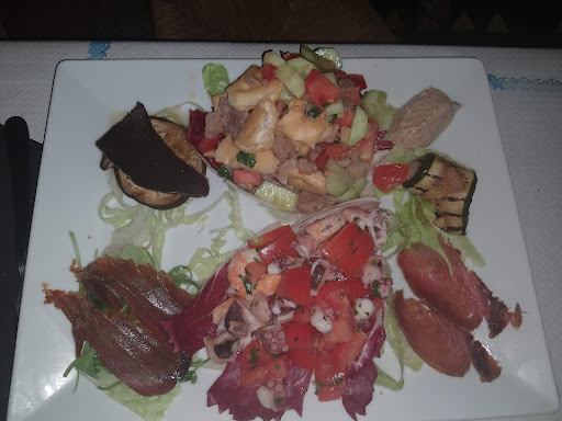 Read moreRiusciamo a prenotare per le 23 e decidiamo di mangiare ristorante. Nel menù non ci sono secondi a base di pesce, siamo a 30metri dal porticciolo pescatori, se non dei gamberi e un pesce su "prenotazione". Optiamo per un antipasto misto mare, che risulta poco abbondante,insipido,e di dubbia composizione se non la classica insalata di mare. Prendiamo due primi,uno spaghetto allo scoglio e tagliatelle agli scampi. Gli spaghetti sono crudi,attaccati gli uni agli altri a formare dei grumi e conditi praticamente al sugo. Il piatto è completamente sporco,di sugo,acqua di scolatura e forse ditate. Non mi piace dare spettacolo,altrimenti l'avrei rimandato in cucina. La pasta non sapeva di scoglio ma solo di sugo. Le tagliatelle agli scampi erano buone. Il cameriere accarezza il cane presente alla tavolata vicino la nostra,poi ripassa con dei piatti in mano. Insoddisfatti decidiamo di chiedere caffè e conto. Il piattino arriva sporco. Pago il conto e solo a casa mi accorgo che non mi hanno dato una ricevuta ma un preconto spacciato per tale. Unico punto a favore la celerità nel servizio....