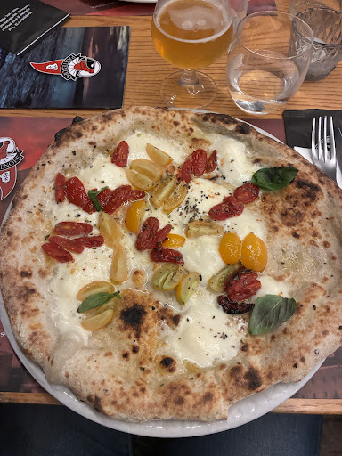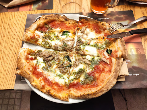 Read moreNon male... Arrivati non con una grossa fame, ordiniamo un tagliere "Partenope" Al costo di 9€ da dividere in 2 , niente di entusiasmante ci sono state portate 4 fette di prosciutto crudo (discreto) tralaltro affettato malissimo valevano quanto 2 fette "Sane" , 4 fette di salame (buono), 3 "bastoncini"di formaggio (pecorino fresco ) 2 mini crostini ( duri come la pietra) ,alcune olive insipide, è una frittura con delle palline di pasta di pizza e delle crocchette di patate insipide. Abbiamo poi ordinato anche da bere dell'acqua e una bottiglia di vino, vino tenuto a temperatura ottimale, ma servito senza seau a glace QUINDI scaldatosi durante la cena perdendo così la temperatura ottimale. Ordiniamo 2 pizze "GOURMET" GUIDI : base bianca con provola affumicata prosciutto cotto basilico e crocchette di patate. Calafico: base bianca ,mozzarella , mortadella e granella di pistacchi. Che dire ,ingredienti ottimi e crocchette sempre insipide, impasto alto con cornicione alla Napoletana, buono di sale , ma gommoso tanto che il cornicione diventa immangiabile. Consiglio al pizzaiolo , di non prendersela per la recensione e di lavorare un Po più sull'impasto , facendo in modo che l'impasto almeno esternamente abbia una consistenza friabile , in quanto di friabile non vi era nulla, troppo troppo troppo, molle .TI CONSIGLIO L'IMPASTO DIRETTO A ME É PARSO UN IMPASTO MATURATO IN CELLA. Vi ho messo 5 stelle,E vi ho dato una critica costruttiva che spero vi aiuti a trovare il top , della forma . PS: SONO UNO CHEF E...