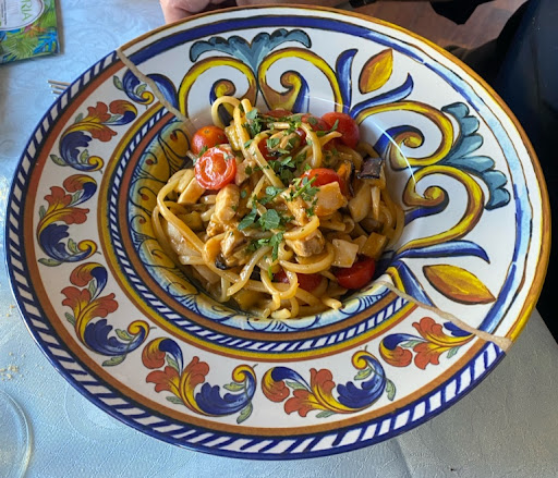 Il cibo è stato, fortunatamente, l’unica nota positiva di una serata disastrosa. L’attesa degli antipasti per un’ora e venti è stato solo l’inizio. Effettivamente c’era una tavolata molto grande nel pieno del pasto, per cui comprensibile del ritardo. Non credo così tanto, però. E non credo nemmeno che gli incessanti tentativi del titolare di sminuire l’accaduto, seppur misti a scuse, abbiano migliorato la situazione. La presa in giro di dirci che sarebbero arrivati gli antipasti in 5 minuti, a pena sua di offrirci la bottiglia di vino ordinata, poteva essere risparmiata: gli antipasti non sono arrivati nei tempi stimati, e a fine cena il vino non è stato offerto. Il vino è stato fatto assaggiare palesemente alla persona sbagliata senza nemmeno chiedere, ma imponendosi, quindi mancanza di professionalità. Non ci sono stati dati coltelli per mangiare un primo con gamberi per cui sarebbero stati necessari. La nota più fastidiosa, ribadisco, è stato l’atteggiamento del titolare, che avrebbe fatto meglio a limitarsi a delle scuse. Le false promesse e le battute, in una circostanza in cui si è già nel torto, sono fuori luogo e aumentano solamente il disagio. Per coronare il tutto, ci è stato intimato di chiamare per prenotare “la prossima volta” non usando più TheFork, perchè “lui non sa se ho una tavolata di 20 persone”: ennesima presa in giro, come se il ristorante non verifichi le prenotazioni e TheFork agisca di vita propria. Serietà...