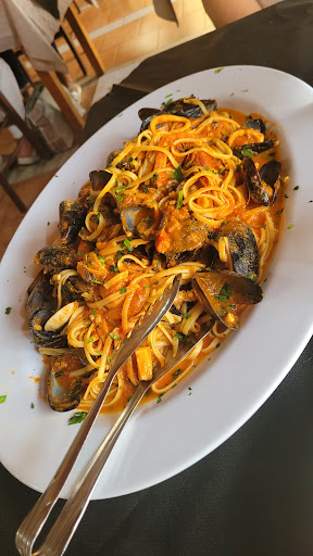 Read moreDue stelle per la location che è ai limiti dell'accettazione Veniamo accolti dalla prima cameriera che nemmeno ci degna di un saluto e dalla seconda che sempre senza salutare ci chiede a quale tavolo preferiamo accomodarci. Si inizia bene penso tra me e me. Buon inizio con un antipasto di terra composto da due fette di speck tre di crudo e varie fettine di salame, tutte col gusto dell'affettato discount Veniamo al pezzo forte credo, le linguine allo scoglio, pasta mangiabile ma le cozze e le vongole ho preferito lasciarle nel piatto in quanto avevano un gusto diverso dal normale. La bistecca di manzo devo dire che era buona, consiglio quindi la carne e non il pesce. Dolci di scarsa qualità. Veniamo al conto: alla richiesta di poter pagare con la carta di credito mi viene risposto BHO.... Voto appena sotto la scarsità,...