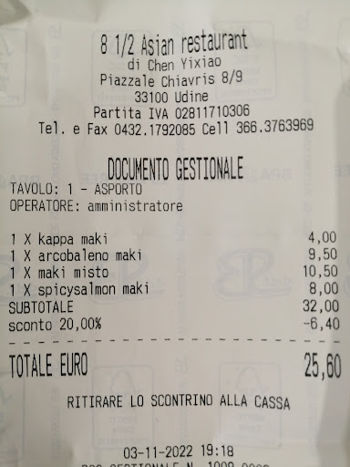 Read moreSono deduce da un super pranzo con la mia fidanzata in questo locale; che dire, le recensioni in cui dicono che è il miglior giapponese a Udine per qualità del cibo sono vere; per me è anche il migliore fuori dal Giappone per ora che ho trovato; il cibo è di una qualità sopraffina, dal riso al pesce alla cura delle preparazioni, alla tempura fritta il giusto ( leggerissima ) etc; un plauso anche ai vini bianchi, provato sia il friulano al calice e anche il traminer, beh nonostante sia un friulano Doc vi posso garantire che in città nn è così semplice trovare vini così buoni, considerando che chiedono poi 3 Euro al calice e 14 la bottiglia.. a quel prezzo impossibile! Chiaramente i prexxi non sono da all you can eat e Noi in 2 prendendo una decina di piatti e il vino abbiano speso 80. Unico neo negativo se vogliamo è stato che era freddo, la ragazza mi ha cercato di spiegare che è x il discorso del covid, aperto chiusi aperti etc e il riscaldamento che è elettrico si vede che lo accendono e lo spengono.. gli ho consigliato una stufa a pellet, costa meno e il quando corre al massimo ha un potere riscaldante molto più grande. Complimenti ancora, è stato emozionante, mi sembrava di essere tornato in Giappone, bravissimi e...