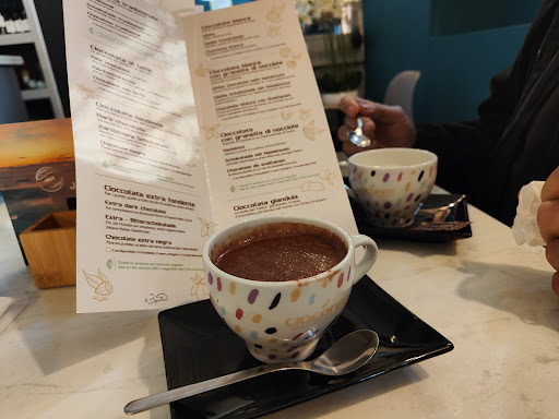 Ieri sera sono stata in questo bar, in un momento con un altissimo afflusso di gente a causa del Capodanno. Ho trovato una famiglia gentile e cortese, che ha cercato di fare il suo meglio per mantenere i tavoli puliti e accontentare tutti anche con il servizio al tavolo in un momento molto impegnativo. Abbiamo bevuto delle cioccolate buonissime che posso solo consigliare. Il bar offre diversi gusti tra cui poter scegliere, noi abbiamo preso due bianche e una all'arancia e cannella e una classica. Consiglio questo bar per atmosfera e per una...