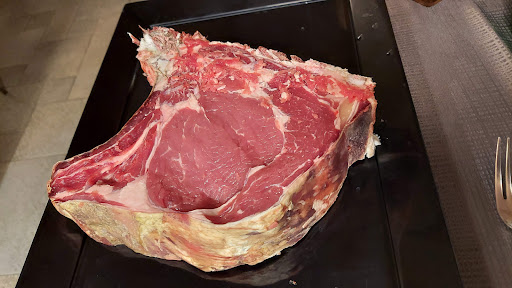 Read moreIncuriositi dalle recensioni e dalle varie pubblicità decidiamo di recarci in questa braceria. Il locale si presenta bene, all'ingresso in bella vista si può ammirare la brace dove vengono magistralmente cucinate le varie tipologie di carni offerte, la sala si trova al piano interrato, non molto ampia ma accogliente e con il giusto spazio per garantire l'intimità e la comodità a tutti i presenti. Il menù è consistente, presenta una discreta scelta di antipasti, ma il pezzo forte, ovviamente, sono le varie costate e fiorentine. Dopo un attimo di indecisione optiamo per un antipasto a testa e una fiorentina da 1.400 gr in due. Un calice di Chianti a testa per accompagnare. Antipasti scelti: Lardo di Pata Negra, servito con focaccine calde, abbinamento delizioso, gusto non troppo marcato, quantità più che onesta. Carpaccio di Black Angus, accompagnato con funghi champignon, formaggio (latteria se non ricordo male) e pomodorini. Soddisfacente al palato, forse l'unica pecca è il taglio del carpaccio, un po' troppo grosso. Passiamo al pezzo forte, Fiorentina di Fassona Piemontese, servita con un set di oli e sali, sui quali ci illumina il cameriere. Che dire, qualità della carne a dir poco eccelsa, cottura al sangue come richiesto, la parte di controfiletto si poteva tranquillamente tagliare con un grissino, tanto era morbida, probabilmente la migliore fiorentina che io abbia mai mangiato. Per accompagnare patate al forno, più che buone, e il calice di Chianti sopracitato, scelta azzeccata. Il conto è salato, ma questo lo avevamo preventivato, 70€ a testa. In conclusione, per gli amanti delle carni è sicuramente un locale da tenere in grossa considerazione, ovviamente non è un ambiente dove una persona normale può andare a mangiare ogni venerdì sera, ma qualche volta trattarsi con gusto può far bene, al di là ...