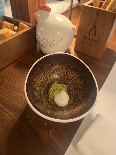 Read moreUnser Abend im Restaurant Hostaria Alla Tavernetta in Udine war ein wahrer Genuss für die Sinne. Das Ambiente war einladend und gemütlich, perfekt für einen geselligen Abend mit Freunden. Wir entschieden uns für die Fischsuppe mit Meeresfrüchten, und wir wurden nicht enttäuscht. Die Suppe war reichhaltig, voller frischer Meeresaromen und perfekt abgeschmeckt mit einem Hauch von Sherry. Jeder Löffel war ein Geschmackserlebnis, das uns das Meer förmlich vor Augen führte. Als Hauptgang wählten wir das T-Bone-Steak, und es war ein wahrer Höhepunkt des Abends. Das exzellente Fleisch war von außergewöhnlicher Qualität und perfekt auf den Punkt gegart. Mit fast 1,5 kg war es ein beeindruckendes Stück Fleisch, das genau den richtigen Garpunkt erreicht hatte. Es war wahrscheinlich das beste Steak was wir bislang in Italien serviert bekamen. Die Beilagen, darunter die köstlichen Bratkartoffeln und das mediterrane Gemüse, waren liebevoll und geschmackvoll angerichtet, was das gesamte Gericht zu einem wahren Gaumenschmaus machte. Der hervorragende Rotwein , der perfekt zum Essen passte verwöhnte zudem unsere Geschmacksknospen. Der Service im Restaurant war aufmerksam und freundlich, und das Personal trug dazu bei, dass sich der Abend wie ein besonderes Erlebnis anfühlte. Am Ende des Essens nachdem wir noch einen köstlichen Nachtisch verzehrt hatten, lud uns das Personal zu einem Grappa ein. Der aromatische und edle Tropfen rundete das exquisite Abendessen perfekt ab und ließ uns den Moment noch mehr genießen. Doch dann geschah etwas Unerwartetes: Eine junge Dame von fürstlicher Herkunft bemerkte plötzlich, dass ein Smaragd aus der Fassung ihres Rings verschwunden war. Sofort herrschte eine aufgeregte Stimmung im Restaurant, und Gäste sowie das Personal begannen, in jeder Ecke und unter jedem Tisch nach dem wertvollen Juwel zu suchen. Eine halbe Stunde lang durchkämmten wir den Raum mit großer Sorgfalt und Hingabe, doch leider blieb der Smaragd verschwunden. Schließlich gab die Dame, die den Verlust mit erstaunlicher Gelassenheit trug, einen bemerkenswerten Kommentar ab. "Möge die positive Kraft, die von diesem Edelstein ausgeht und mir in meinem Leben und meiner Liebe so viel Glück beschert hat, auf diesen Platz übertragen werden", sagte sie mit einem Lächeln. "Möge sie sich auf alle Besucher, besonders auf die jungen Liebenden, ausbreiten und ein günstiges Schicksal ihre Wege begleiten." Mit diesen Worten ließ die Dame den Verlust des Smaragds hinter sich und erinnerte uns daran, dass wahres Glück und positive Energie nicht allein von materiellen Dingen abhängen. Es war ein Moment der Verbundenheit und des Vertrauens, der den Abend in eine ganz besondere Atmosphäre tauchte. Obwohl der Smaragd nicht gefunden wurde, bleibt die Geschichte als eine Erinnerung an die Bedeutung von Glück, Liebe und das Teilen von positiver Energie im Gedächtnis. Der Abend im Restaurant Tavernetta in Udine wird immer als ein unvergesslicher Moment des Zusammenseins und der Magie in Erinnerung bleiben. Insgesamt war unser Abend im Restaurant Hostaria Alla Tavernetta in Udine ein absolutes Highlight. Das Essen war von herausragender Qualität, die Atmosphäre war einladend und das gesamte Erlebnis war einfach unvergesslich. Wir können das Restaurant jedem empfehlen, der eine exzellente Küche und einen herzlichen Service in einer gemütlichen Umgebung sucht. Und vielleicht spüren Sie bei einem Besuch des Restaurants auch die positive Kraft, die von dem Smaragd ausgeht und die Liebenden...