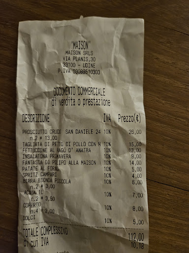 Read moreThe place is amazing, even if it's a bit "out of hand", in comparison to the comparable restaurants in Udine. Good wine, decent beer, over the top hospitality... Actually, really over the top, and I started feeling a bit oppressed....