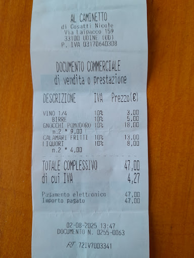 Un locale per buongustai che non guardano alla raffinatezza ma preferiscono piatti di qualità.... Se siete un amante delle stelle della nota guida rossa il posto non fa per voi... Io che o per mia scelta preferisco “ andare al sodo “ adoro questo tipo di osterie/trattorie genuine ed alla vecchia maniera friulana, con piatti del giorno scritti ordinatamente sulla lavagna, personale che ti accoglie senza grandi “salamelecchi” ma in modo molto educato e cordiale. Eppoi i piatti sono di una bontà notevole, cucinati con cura e leggeri, sia la carne che il pesce, dall' antipasto fino al dessert della casa. Vini della zona il caraffa assai gradevoli. Un dettaglio in più : fanno dele polpette che vanno a ruba ed è bene prenotarle se andate li solo per il cosidetto “tajut”. Io questo “ Caminetto “ ve lo consiglio senza...