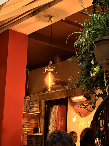 Small interior, big terrace. Tavern vibe, simple yet cozy. Bad toilet experience, there is only one facility (outside in the cold) and it is a squat toilet.
