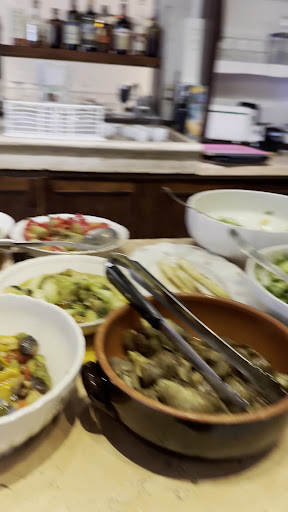 Nel mentre, mi rendo anche conto che molto probabilmente sia il cibo ma anche il rapporto qualità prezzo dei vini non è un granché. Non li ho provati, ma alcune cose si percepiscono e sentono "a naso". Vado poi oggi su Google recensioni e guarda un pò ?! avevo ragione. Menomale che me ne sono andato senza mangiare, nè bere, poiché allo sgabello, a fianco dalla porta (come non so chi) non volevo starci. Mandato a quel paese esco e me ne vado. Ho trovato un posto invece davvero ottimo in zona. Non consiglio questo locale, soprattutto per il titolare (se non si...