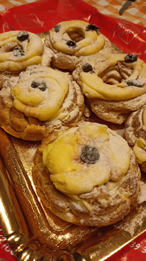 Venerdì pomeriggio chiamo per prenotare per domenica alle 12 un vassoio di 10 zeppole di San Giuseppe, miste. Domenica, alle 12.10 mi presento per ritirare il vassoio. Entro, aspetto il mio turno e finalmente riesco a parlare con una ragazza che va in cucina e torna per farmi capire che non c'è alcun ordine a mio nome! Esce il pasticcere e mi richiede cosa avessi ordinato, alla mia risposta torna dentro. Arriva l'ennesima persona a chiedermi conferma dell'ordine, e mi dice che stanno incartando il vassoio. Dopo 10 minuti capisco che il mio ordine non era mai stato preso, e che le zeppole ordinate due giorni prima le stavano facendo in quel momento per rimediare al danno. Dopo 40 minuti di attesa finalmente esce il famoso vassoio. Inutile dire lo "schifo" che ho trovato aprendo il vassoio dopo pranzo, un pranzo al quale ero stata invitata, dove ho voluto portare il dolce..essendo le zeppole bollenti la crema si era tutta sciolta. Vergognosi davvero, mi sono sentita così in imbarazzo! Potevo capire tutto, ma la presa in giro no. Non ho detto niente solo perché mi ero fatta 20km per andare lì ( 40 se contiamo anche il ritorno) e visto il prezzo della benzina non ho voluto fare il giro a vuoto, ma me ne sarei dovuta andare subito. Per quanto se le sono fatte pagare...