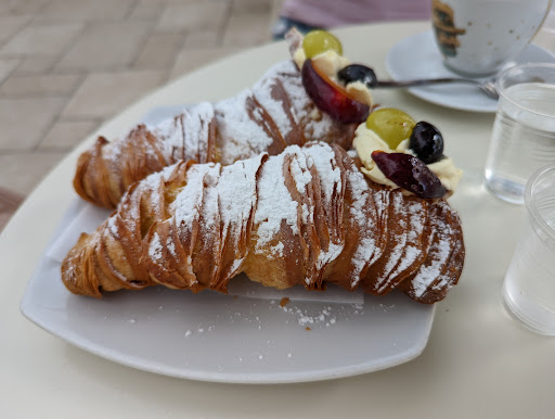 I also tried to save some food by reserving a "Too good to Go' bag and it was big with 6 croissant that we ate for breakfast the next morning" Two days after I went to grab breakfast 3 croissant and 1 pasticciotto with ricotta and chocolate and OMG it was one of the best pasticciotto I've ever had! Last but not least I had a good coffe with a mini babà which was , not surprisingly, delicious.