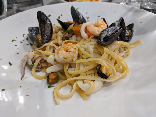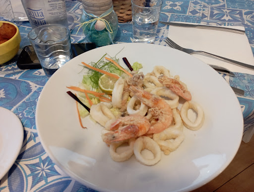 Read moreRapporto qualità/prezzo/quantità non eccezionale....anzi. Partiamo con il dire che la location è molto bella, direttamente sul mare. Il personale è cordiale e disponibile. Per quanto riguarda il cibo.....direi che si può fare molto meglio. Antipasto di polpettine di polpo 9€ diciamo che il sapore predominante era il formaggio però abbastanza buone. Antipasto insalata di mare 15€....il pesce freschissimo e cucinato bene ma la porzione era abbastanza risicata. Linguine ai frutti di mare 16.50€....questo è stato forse l'unico piatto veramente buono mangiato questa sera. Frittura di calamari e gamberi 16.80€....(buttati) perché non solo la porzione era veramente minima ma anche perché la pastella era molliccia e insipida mentre il pesce all'interno era quasi crudo (probabilmente l'olio era poco caldo). Polpette al sugo 9€....lo so che per una cena di pesce non sono il massimo ma i bimbi volevano quelle come le fa la nonna e in questo ristorante hanno trovato quelle della nonna anche se con metà porzione di quelle che fa la nonna. Peccato....forse la serata storta del cuoco ma la location meriterebbe molto di più per i prezzi delle portate...