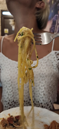 Read moreRistorante turistico di pesce dallo stile un po' pacchiano che ricorda un mix tra i banconi delle fiere di paese e i ristoranti italoamericani anni 90'. Insomma, lo stile è da rivedere. Così come il sistema prenotazioni: blocco online un tavolo da 4 all'esterno per poi ritrovarmi all'interno vicino alle cucine e al bagno. A quanto pare l'app non funziona come dovrebbe, secondo quanto appreso dal personale (nonostante sia un'app molto conosciuta e notoriamente efficiente). Problemi loro, non miei. Per non parlare del menù, eccessivo: troppe proposte tra primi e secondi, anche di terra, che gettano ombre sulla freschezza di tutti gli ingredienti. Ma questa è solo una mia congettura. Passiamo alla sostanza: pepata di cozze veramente buona (il sughetto è da scarpetta), spaghetti al granchio e ai frutti di mare, godibili. Flop totale invece per gli spaghetti cacio e pepe (scelta coraggiosa di un commensale): appiccicati e insipidi. Molto apprezzate le dimensioni delle porzioni, generose e ben impiattate. Conto: 24€ a testa per un primo, una pepata condivisa e bevande ammesse. Nella media della...