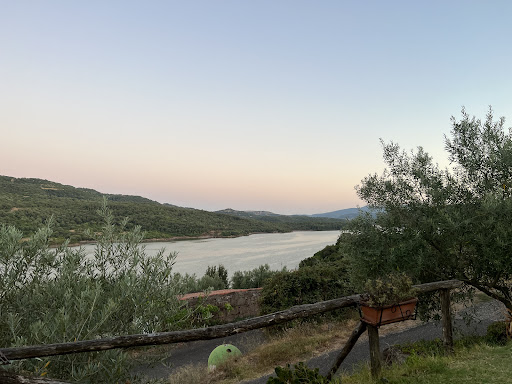 Read moreLocation molto bella complice una giornata festiva ricca di sole. Arriviamo in vista del lago, parcheggiamo, scendiamo dalle macchine e ci incamminiamo verso il locale. I tavolini bianchi all'esterno, al riparo dal sole, sono carini e la vista è davvero piacevole. Due ragazzi degustano un cocktail e nulla al mondo potrebbe turbare il nostro mood superpositivo. Ma commettiamo un grave errore: siamo uno in più; sono riuscito a liberarmi e ci sono. La signora, probabilmente la proprietaria, ci lascia velatamente intuire che la cosa non la gradisce appieno, ma si scontra con il nostro mood superpositivo. Il menù non è come quello che ti aspetti: fregola, grigliata di carne ecc. Ardisco a chiedere un piatto particolare ma... nooo ci vogliono almeno 50min. Imperturbabili ( per via del mood superp...) sorridenti , glissiamo verso la grigliata, che arriva... abbrustolita. Per fortuna ci fa compagnia, successivamente un essere più cordiale a cui sorridiamo( per via del mood superp...).Tutto qui! Un dito sull'obiettivo mentre si fotografa un panorama. Chiedo scusa a quella piccola volpe rossastra a cui , senza volerlo, ho provocato una commozione cerebrale , colpendola con la carne del doggy bag, benevolmente lanciata...