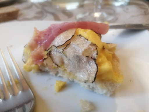 Mi riferisco al ristorante : Piacevolissima scoperta che rende Poggio Renatico la capitale del buon cibo in provincia di Bologna! 😱 Il vicino Pippi per il tradizionale e questo invece per un cibo ricercato ma... Economico! Incedibile. Le proposte del giorno vediamo spesso ma sempre ottime. La petroniana, la toglierei dal menù, anche se buona non rietra nello stile a mio avviso. Buonissime bruschette all uovo. Fiori di zucca fritti = n. 1. Fantastici. Tortelloni ottimi in entrambe le varianti, sia alla zucca. E forse gli antipasti sono la cosa migliore. Ah, il vino della casa, parlo del bianco frizzante, leggermente fruttato, a me pare. Uno spettacolo. Cordialità e professionalità. Che dire di più!? Sentiremo il resto del...