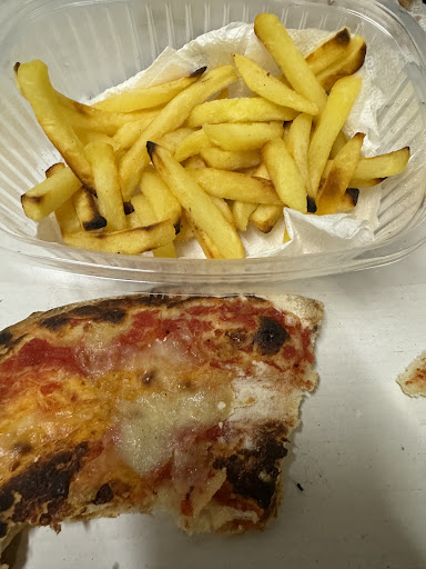 Sono venuta per la prima volta a cena con delle amiche qualche giorno fa: il locale è carino, anche se situato su una strada trafficata, quindi immagino che anche in estate tocchi mangiare all'interno.. Premetto che quando siamo arrivate non era tutto pieno, quindi non immaginavamo di aspettare oltre un'ora per 4 pizze :( , se non fosse che il cameriere era solo uno, quindi abbiamo capito il motivo di tanto ritardo (non giustificabile, però comprensibile). Quello che non é comprensibile è che oltre al ritardo é stato anche servito un tavolo accanto al nostro che era venuto dopo di noi. 😕 L'unica nota positiva di tutto quanto é stata la pizza: l'impasto soffice e digeribile, il cornicione alto come piace a me; forse un po' povera di condimento (essendo già priva di mozzarella perché vegana, un po' di olio ci stava bene 😅). Divertente (per modo di dire) l'intervento del cameriere che a fine serata ci chiede se volessimo del dolce e alla nostra risposta negativa, a cui avrei voluto aggiungere "magari un caffè, si" si era già dileguato 😅 Costo nella norma, servizio veramente scadente. Consiglio di aumentare il personale oppure di evitare di riempire tutti i tavoli con le prenotazioni se poi i clienti verranno gestiti male o trattati con...