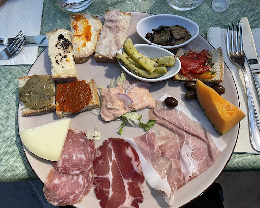 Read moreNous y sommes allés deux fois Je vous recommande les anti pasto, les raviolis au ragoût, les patates rôtis, le jambon et le carpaccio de truite ! Le cadre est vraiment joli ! Je ne mets pas toutes les étoiles car le Personnel très serviable, mais souvent débordé. Je déplore également que faute de parler français ou de savoir traduire en anglais, comme cela n'est pas écrit sur la carte, nous avons eu le droit à la glace au citron bien que très bonne, à la tarte au chocolat et au gâteau de riz en proposition orale de dessert.J'ai pourtant entendu la serveuse proposer en italien une croustade de myrtilles ou un tiramisu une fois notre dessert fini.... Dommage j'aurai bien goûté. Attention au sel aussi parfois trop présent mais j'ai l'impression que beaucoup d'italiens du Nord...